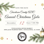 The ADC Christmas Gala will be held on December 12, 2025 at the Tuscaloosa River Market, beginning at 7pm. The keynote speakers for the evening are Clint Albright and LaTosha Brown of Black Voters Matter. The theme is Winter Wonderland, and attendees are asked to wear all white attire.